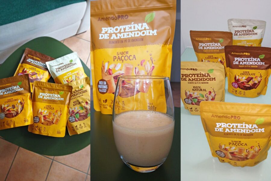 A AmendoPRO tem deliciosas proteínas veganas nos sabores: Tradicional, Paçoca, Chocolate, Cappuccino e Chocolate Branco! Todos os sabores são deliciosos! O meu preferido é o de Paçoca!